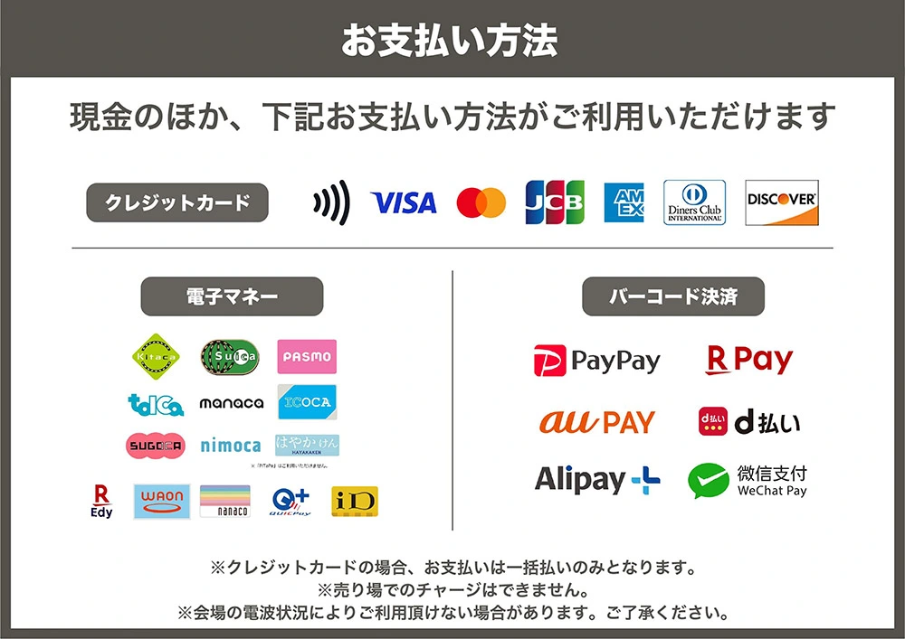 ※クレジットカード、QRコード決済でのお支払いは、電波状況によりご利用いただけない場合がございます。